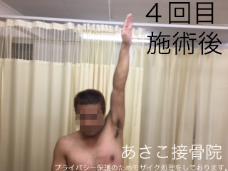 4回目の施術で、外転、挙上、内外旋の可動域は、戻りました。
